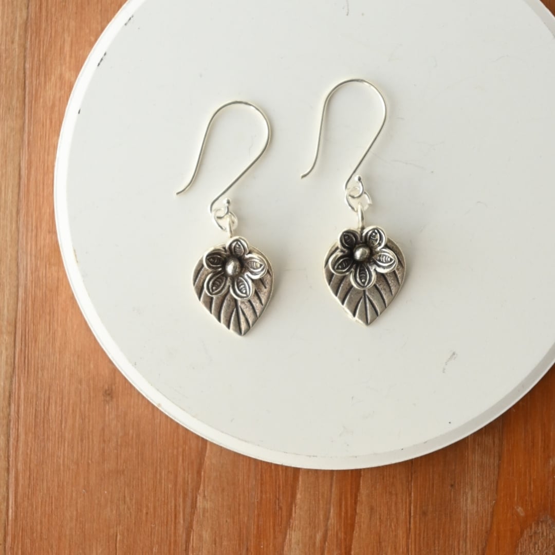 葉っぱの上にお花が重なったパーツのピアスです。